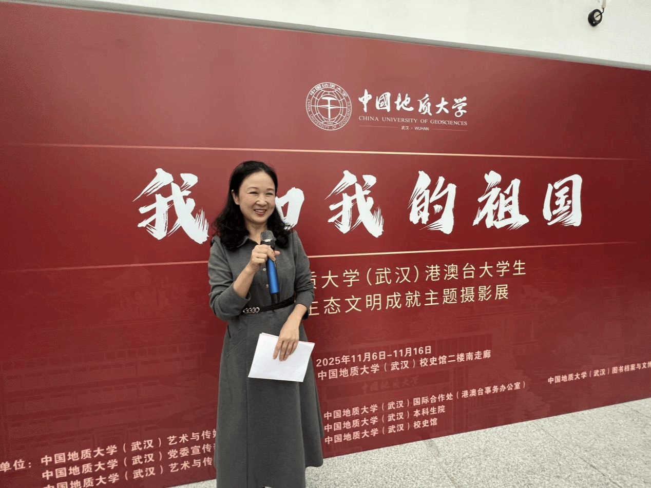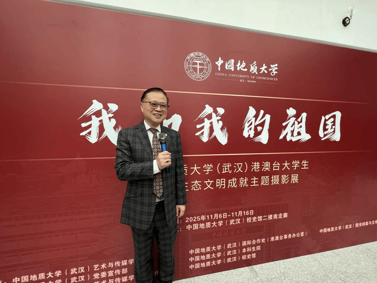 (通讯员 李敏 章奕)2025年11月6日下午15时,中国地质大学(武汉)“我和我的祖国”港澳台大学生祖国生态文明建设成就主题摄影展在中国地质大学(武汉)校史馆正式开幕。国际合作处处长、港澳台事务办公室主任关庆锋,图书档案与文博部部长帅斌,党委宣传部副部长吴仁喜,本科生院副院长高艳丽,图书档案与文博部副部长刘治国、艺术传媒学院副院长张梅珍、华中师范大学新闻传播学院刘震副教授及KY开元集团官网新闻传播系20余名师生代表共同出席。仪式由KY开元集团官网院长何清俊教授主持。