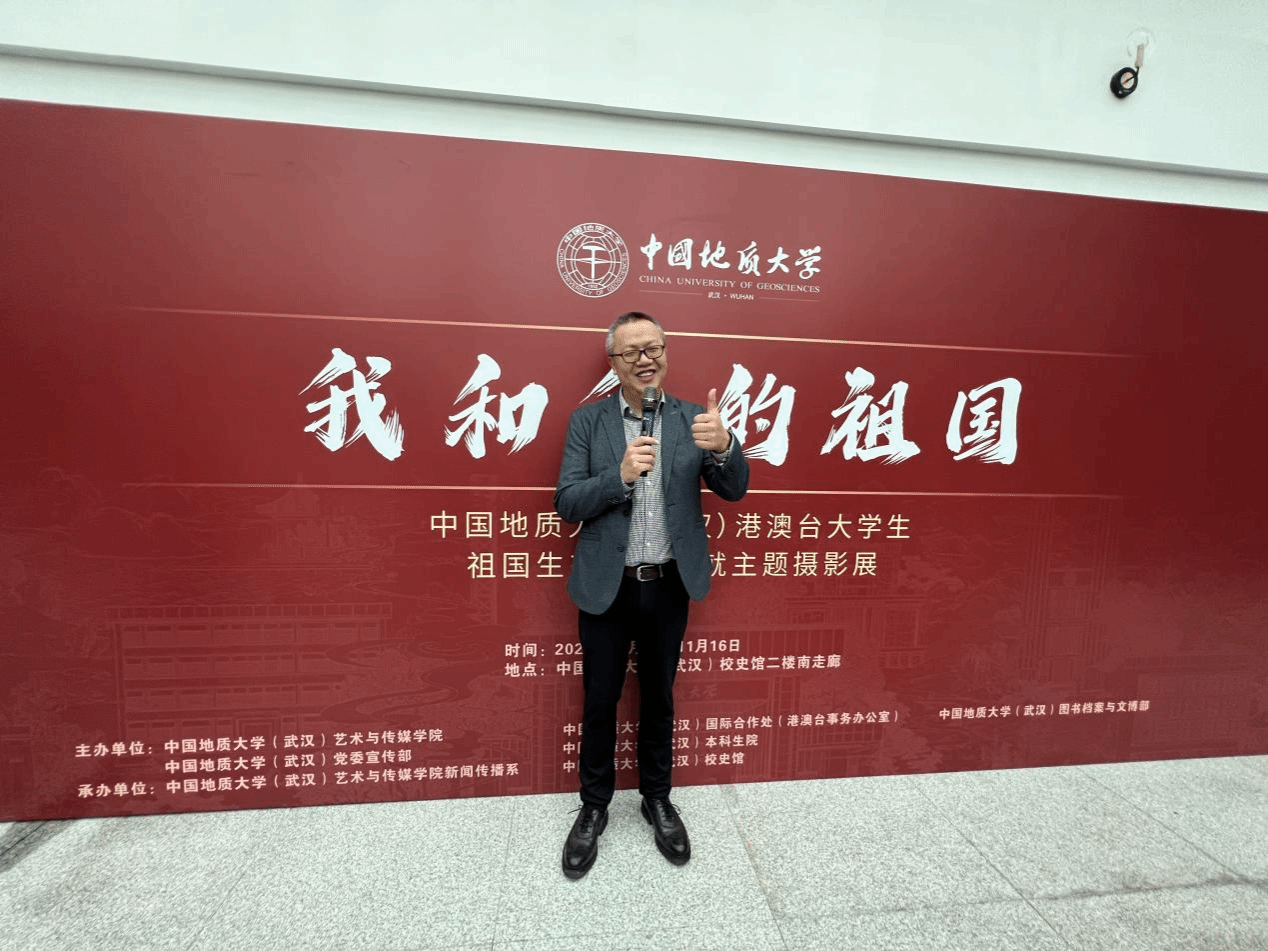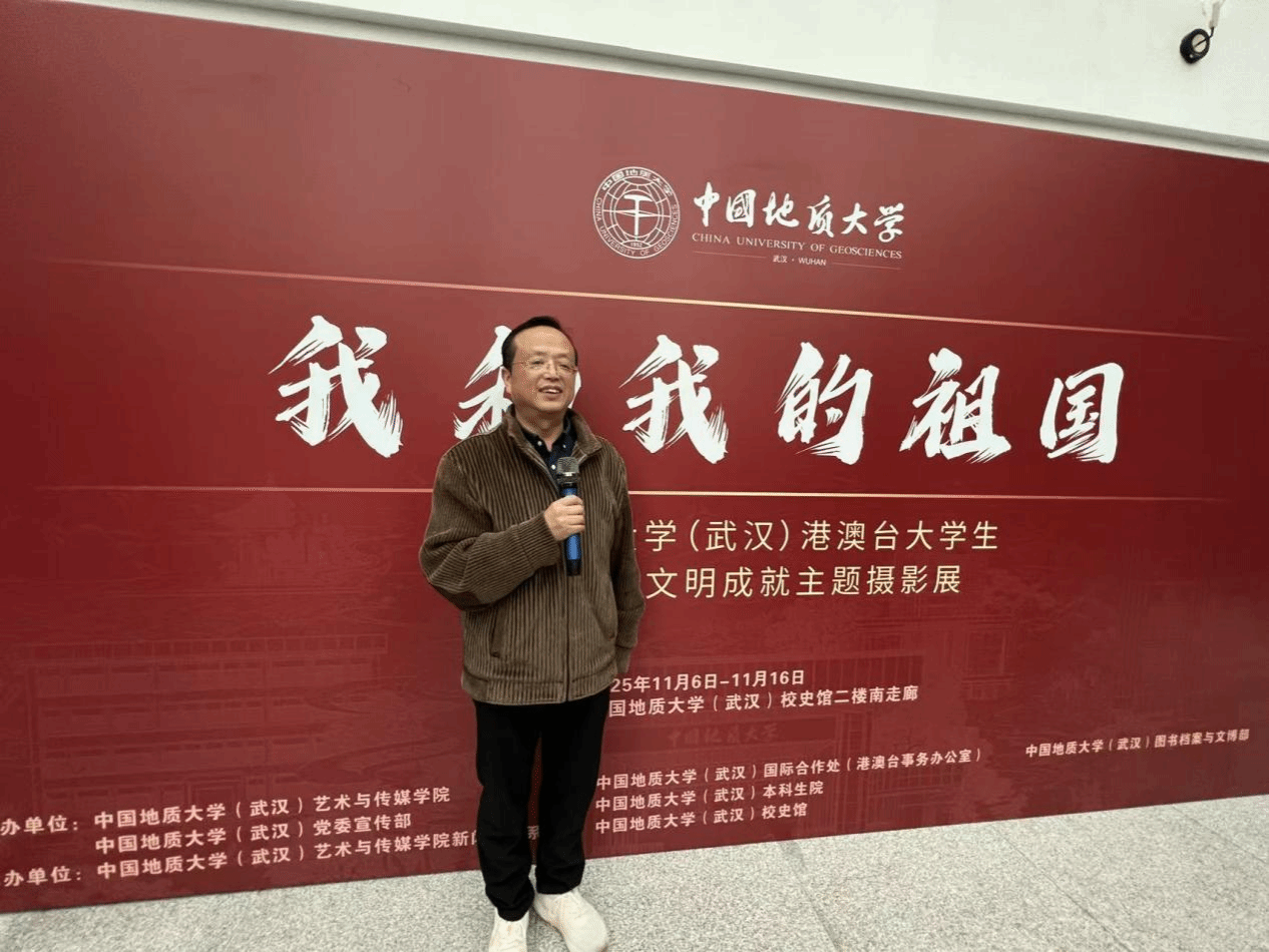 策展人、KY开元集团官网喻继军副教授分享了摄影展的策划与组织过程。他表示,活动旨在为港澳台学生搭建展示才华、促进沟通的平台,依托同学们对摄影的兴趣与热情,以大地为课堂,用影像记录中国,推动跨文化、跨领域的交流合作。谈及活动体会,他强调,“两岸三地一家亲,我们都是地大人”。展览凝聚了学校本科生与研究生、港澳台学生与内地学生、KY开元集团官网与相关职能部门的共同努力。他特别提到,学校长期重视实践教学,同学们在秭归实习、野外考察中锤炼了意志,也深化了对祖国生态文明建设的理解。此次展出的作品,正是这些实践成果的生动体现,展现了“我和我的祖国”之间深厚的情感联结。