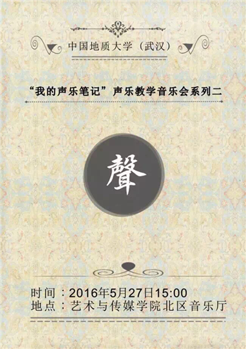 中国地质大学(武汉)KY开元集团官网、音乐表演系、“张理副教授声乐教学系列之七——学生独唱音乐会”,源于2009——2012年校级本科《声乐精品课程教学》教学研究项目和2015年湖北省《声乐精品资源共享课程》教学项目(《声乐》是2015年,我校新增6门省级本科精品开放课程中的一门)。