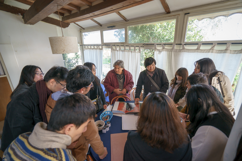 罗素教授是具有四十年教学经历的教育家、画家。在他的示意下,访学团跟随他进入学校的后院进行参观。站在艺术学校的后院中,向下可俯瞰罗马全景,视野十分开阔,而院中草木丰茂,充满野性之美,更有众多由意大利知名艺术家在此制作的景观装置,其构造既洒脱又充满艺术的美感,堪称自然与人文相结合的完美典范。随后,罗素教授邀请访学团进入室内,欣赏艺术学校学生们的艺术作品,并播放教学视频与访学团成员一同观赏。期间,罗素教授表示:“意大利是一个具有深厚历史底蕴的国家,有许多东西值得一看。而中国也是一个很伟大的国家,我曾多次去到中国,并对中国的文化非常感兴趣,因此,我也希望将两国之间能相互学习相互融合,真正的建起两国文化交流的桥梁。”说罢,更示意访学团成员可在此自行参观。