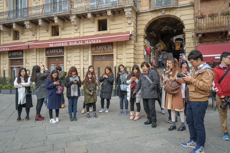 早10点12分,访学团在马林老师的带领下抵达锡耶纳。交错的小径密布在这座城市之中,古朴与现代的碰撞在这里形成了奇妙的风格。面对红黄交织的锡耶纳建筑,马林老师认为,土红和土黄是属于锡耶纳的色彩,而其城市本身对于意大利来说,重要性并不亚于佛罗伦萨。