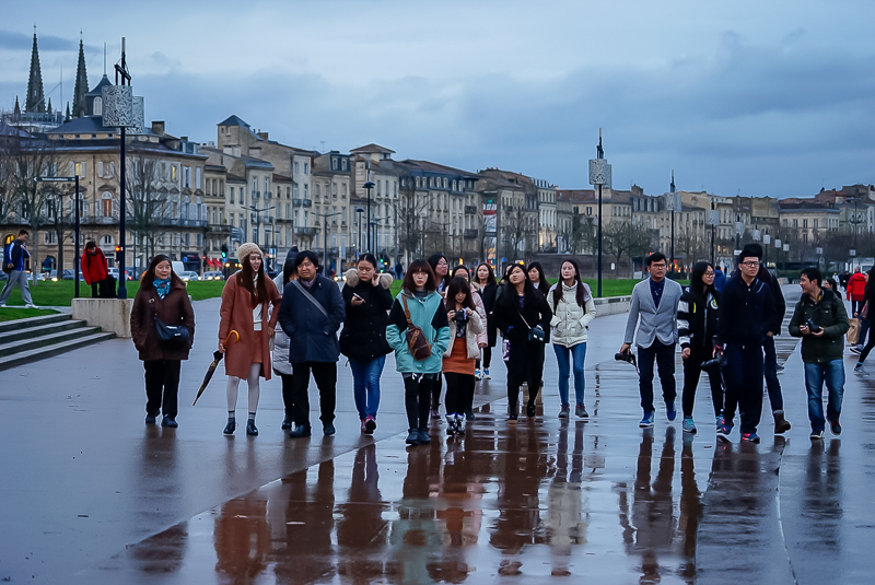 观赏结束,天空下起了小雨,雨声渐大,波尔多的夜亦在雨幕中降临。