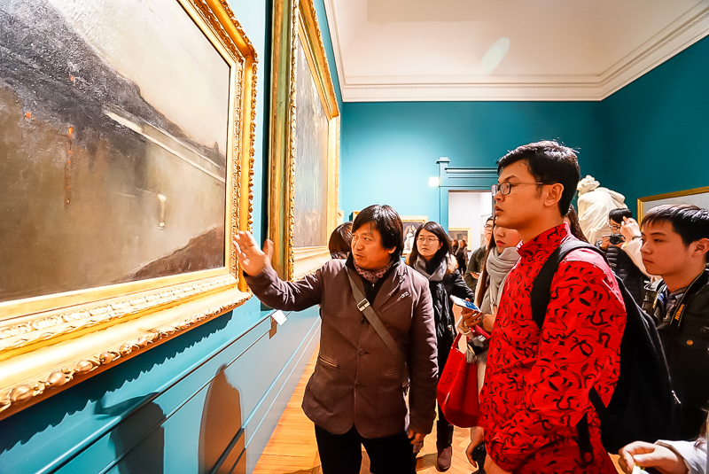 下午,马老师带领访学团直奔罗马国家现代美术馆。马老师介绍到,罗马国家现代美术馆是意大利收藏现代美术作品作丰富的美术馆,并带领访学团逐一参观了19~20世纪新古典主义、马基亚伊奥利画派、未来主义、形而上画派、抽象主义等不同风格流派的绘画作品,并重点分析不同时期大师作品的特色。