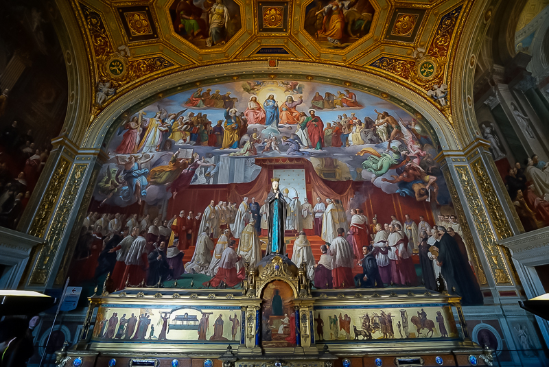 圣彼得大教堂位于梵蒂冈博物馆不远处,最初是由君士坦丁大帝在圣彼得墓地上修建,由教皇朱利二世重建。教堂内部装饰着浮雕及塑像,米开朗琪罗的圣母哀痛雕像和圣彼得青铜雕像亦在其中。教堂整体气势恢宏,细部又精美异常,设计之精妙,令访学团叹为观止。