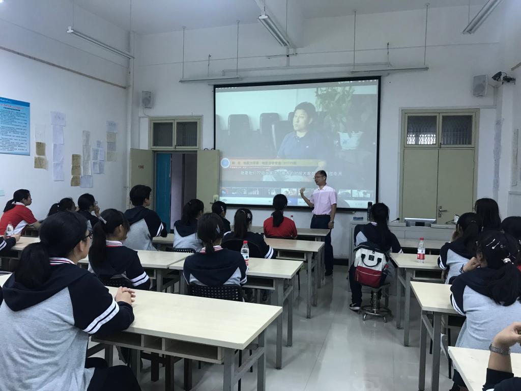 最后,在1106教室,方浩老师为同学们展示了他和团队所制作的优秀科教实践作品。视频通过恢弘的镜头及精良的特效,普及科学知识并传递科学精神。方老师为同学们介绍了学院的基本情况和办学理念,教导同学们养成良好的学习、生活习惯,树立正确的三观,期待同学们有机会就读地大KY官网。