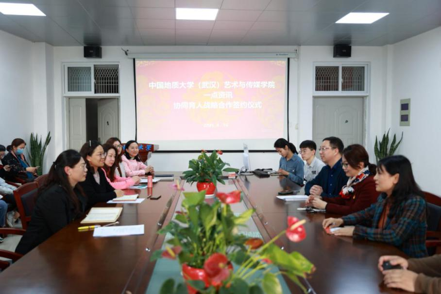 (通讯员 丁洁 张娇)4月15日,中国地质大学(武汉)KY开元集团官网和一点资讯协同育人战略合作签约仪式暨媒体融合发展论坛在艺媒楼新闻系会议室举行。映盛中国副总裁兼武汉公司总经理杜永海、KY开元集团官网党委书记郭秀蓉、副院长张梅珍教授、杨喆副教授及新闻系师生出席仪式。