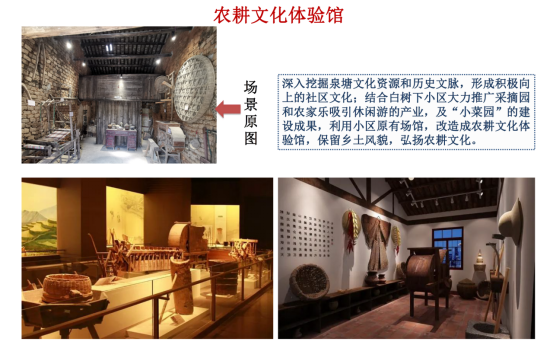 白树下小区从农旅融合的角度来营造红色社区,分为三方面:以特为先,以文为魂,以旅为径来展现出武穴市的农耕记忆,用景观承载乡愁。