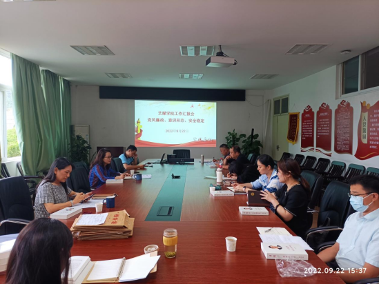 9月22日下午3:30,学院党委在1209会议室召开党委扩大会议,专题学习研讨党风廉政建设、意识形态管理及安全稳定工作。会议由党委书记郭秀蓉主持,学院党委委员、各教职工党支部书记、全体辅导员参加了本次会议。