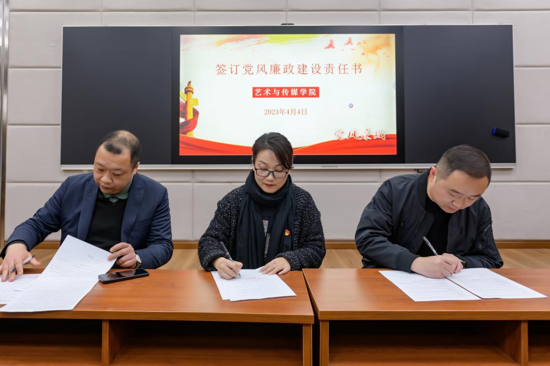 接着郭书记代表学院与各三级单位负责人签订党风廉政建设责任书、消防安全责任书、平安建设目标管理责任书、保密工作责任书。大家表示要认真落实本次会议精神,不断加强党风廉政宣传教育,涵养学院良好政治生态,为高质量发展奠定坚实基础。