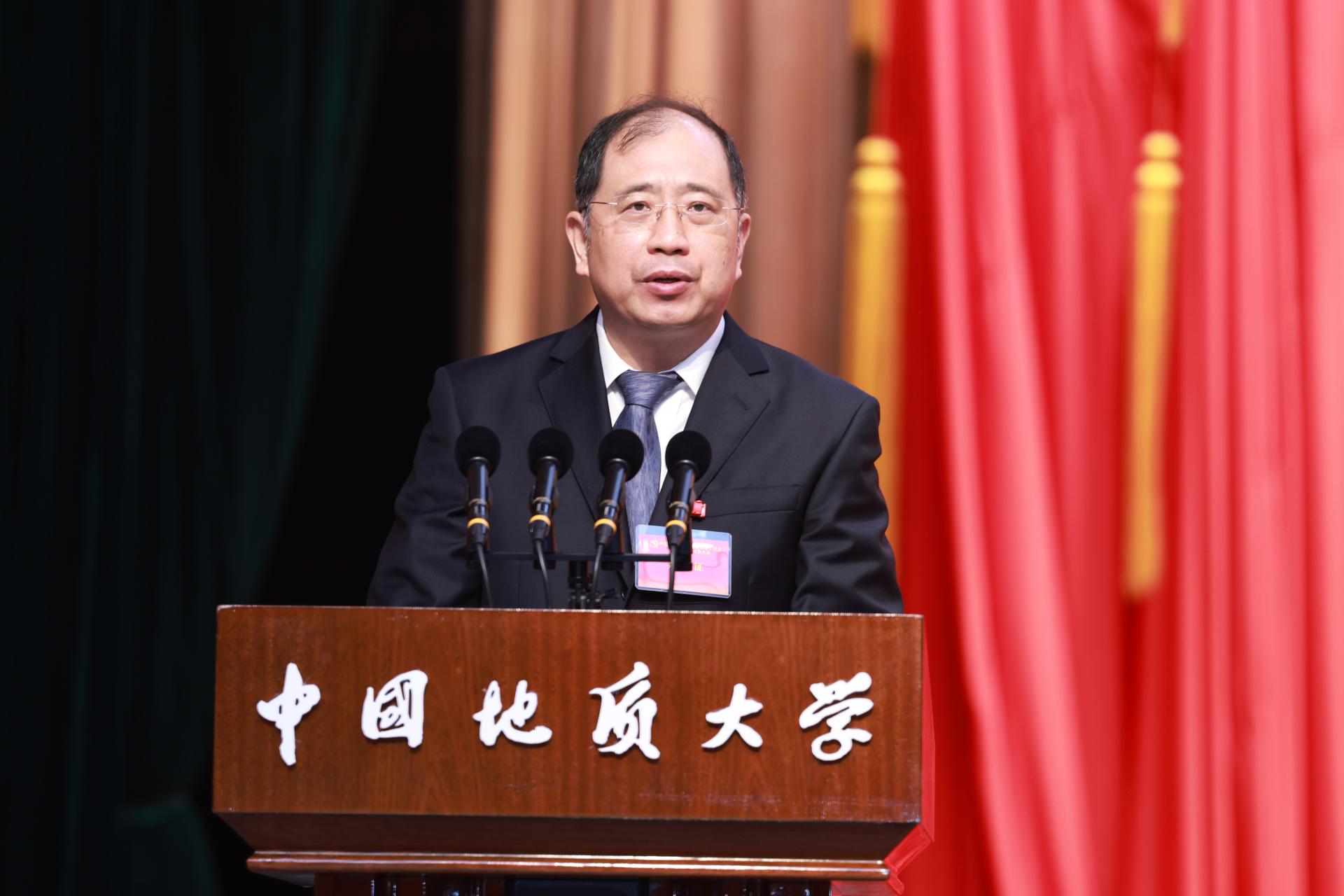 报告指出,党的二十大和习近平总书记给地质工作者的回信赋予科教事业新的更重的时代责任、赋予地质工作新的更高的历史地位、赋予地大新的更崇高的光荣使命:坚守为党育人、为国育才,始终与党同心、与国同进、与民同行,培养担当民族复兴大任的时代新人;服务美丽中国、宜居地球建设,助力推动构建“人与自然生命共同体”和“人类命运共同体”;矢志创新策源、追求卓越,打造地球科学领域人才高地、创新高地,引领推动地学教育和研究范式创新;聚力勇闯新路、创建一流,扎根中国大地,遵循教育规律,蹚出学科特色型大学创建中国特色世界一流大学的新路。