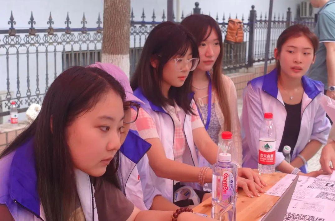 在西区体育馆门前,志愿者们举着“KY开元集团官网”的牌子引导着新生去到迎新摊位,随后在老师们的协助下完成学籍信息录入以及个人资料的收集等,并耐心回复了家长们有关在校学习和生活的各类疑问。