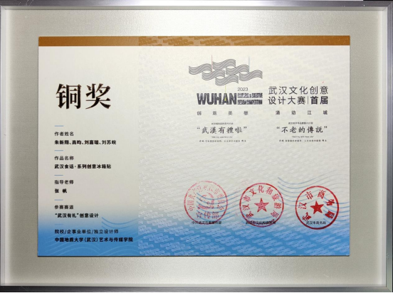 该大赛征集活动引发了文创设计专业人士、文创企业和机构、院校师生等社会各界人士的广泛关注,共收到来自全国27个省市(自治区)1948位注册用户的1556套(3739件)创意设计作品,涵盖了IP设计、插画、文创产品、书籍装帧、老字号策划案、应用程序APP、环境艺术设计等七大类别。经过初评和终评,KY官网张帆副教授指导的2个研究生团队凭借独特的创意思路、精湛的设计手法以及出色的团队合作精神取得优异成绩。其中朱新翔、高昀、刘嘉瑞、刘苏皖完成的作品“武汉食话·系列创意冰箱贴”获得铜奖;江楠、杨倩瑜、苏恺琳、周缘完成的作品“四季美茶饮产品包装与衍生伴手礼设计”获得创意优秀奖。