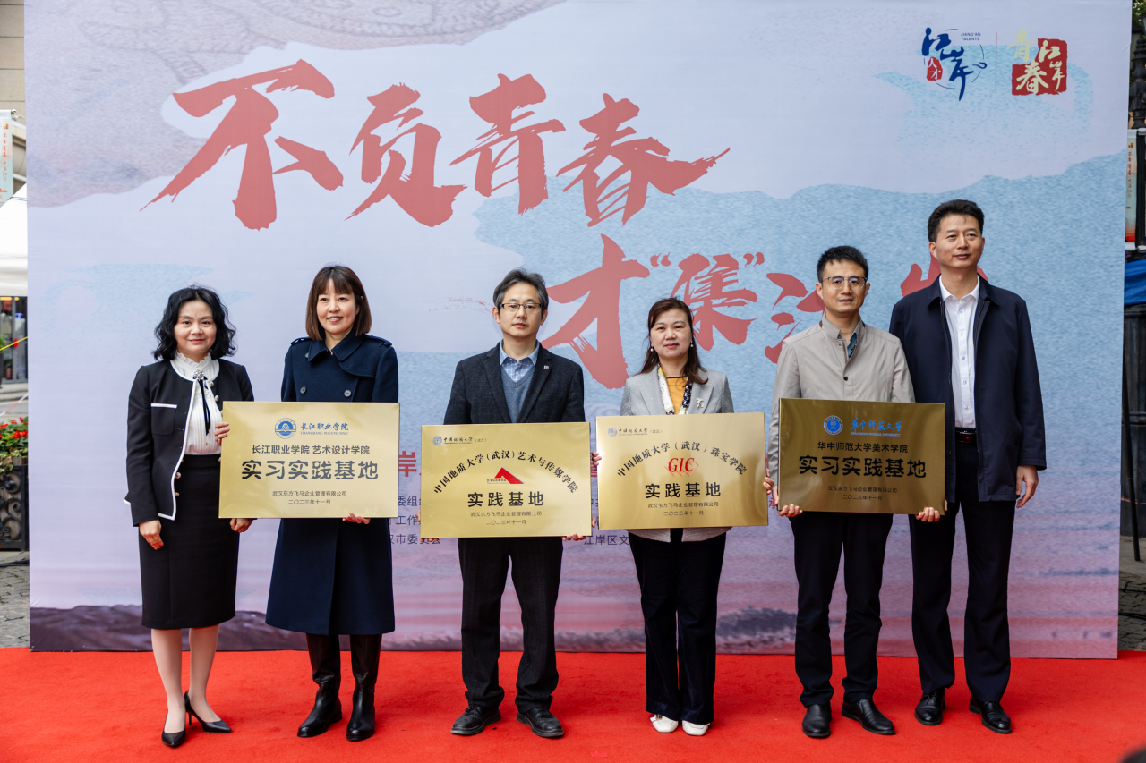 11月10日下午,为深入贯彻落实党的二十大精神和习近平总书记关于新时代人才工作、青年工作的重要指示,积极搭建青年人才创新创业和文化交流平台,加强校企合作,KY开元集团官网院长何清俊教授、学工组辅导员曾戈晖以及学院学生代表一同前往汉口历史文化风貌街区黎黄陂路步行街参加2023年江岸人才青春市集暨数字文化人才创新基地揭牌仪式活动。