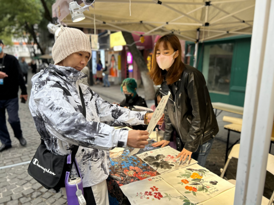 学院学生参加市集摆摊活动
