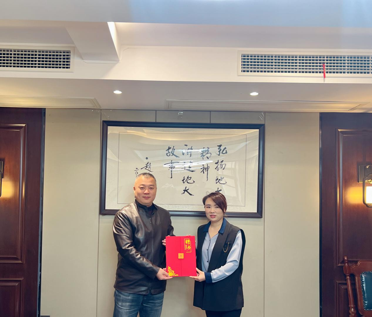 (晋曦、边建华为校友周红桥、周伶俐、罗敏颁发校友之家建设负责人聘书)