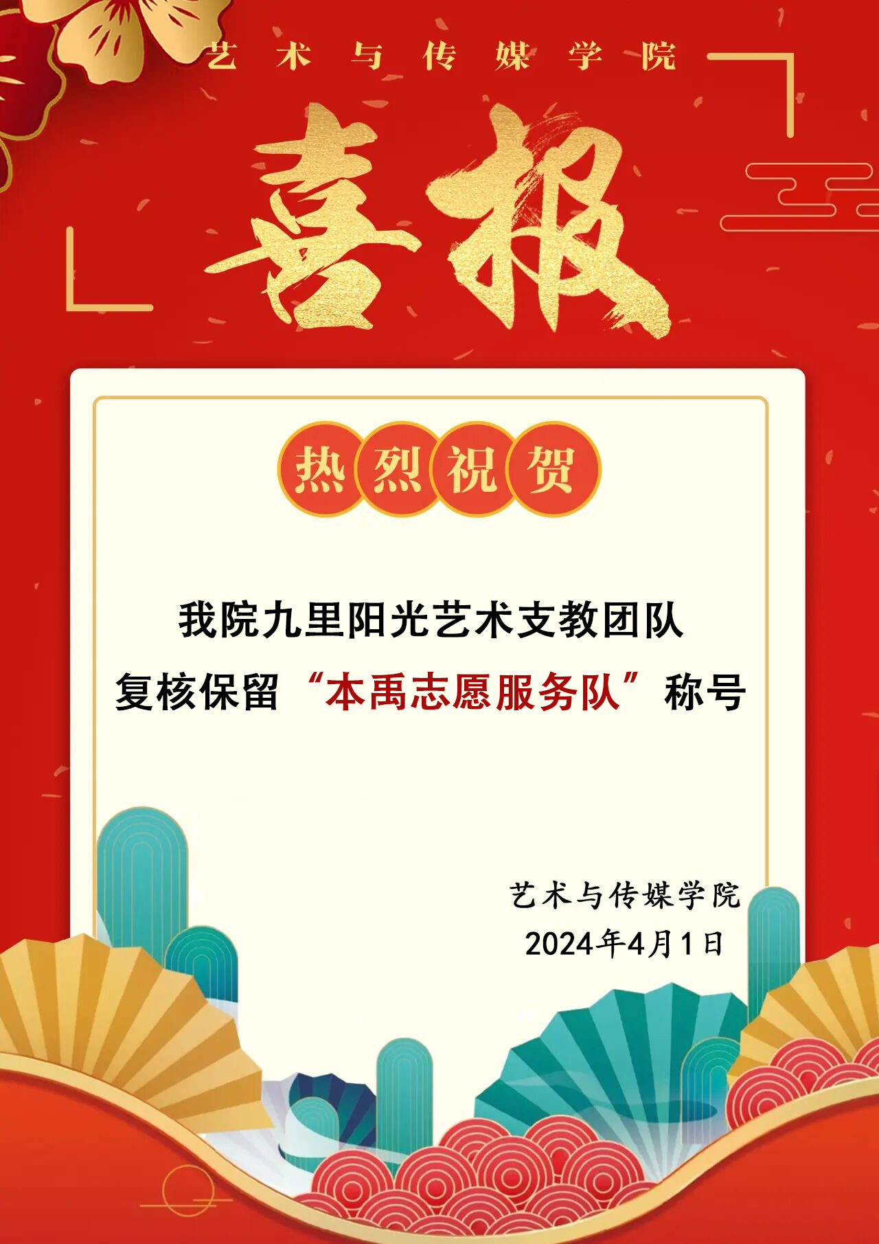 近日,湖北省志愿者协会下发《湖北省“本禹志愿服务队”2023年度拟命名和2014—2022年度复核拟保留命名名单公示》。根据评审结果,拟命名2023年度湖北省“本禹志愿服务队”50支,2014—2022年度复核拟保留命名湖北省“本禹志愿服务队”150支。KY官网九里阳光艺术支教团队经复核保留湖北省“本禹志愿服务队”称号。