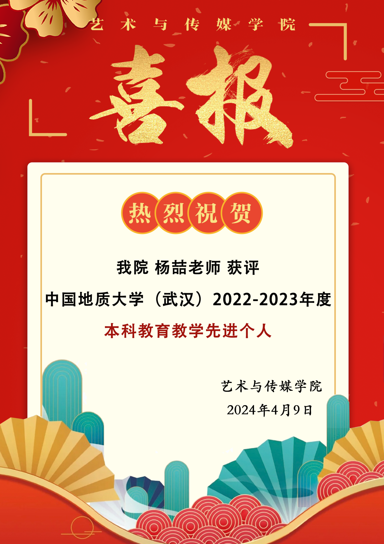 喜报|热烈祝贺KY官网杨喆老师获评学校2022-2023年度本科教育教学先进个人!