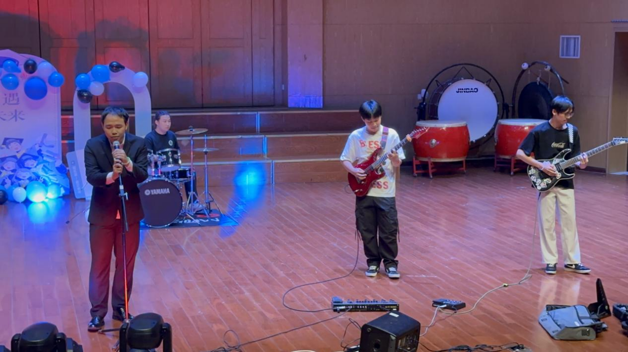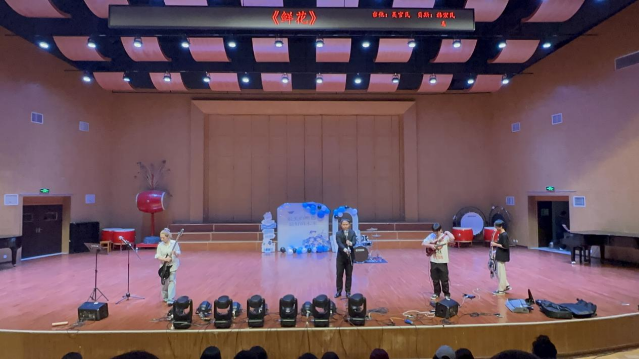 吴官民和他的同学们带来的乐队表演《鲜花》和《Whataya want from me》则以其激昂的旋律和精湛的技艺赢得了观众们的阵阵掌声。乐队成员们默契的配合和精湛的演奏技巧,将歌曲中的情感表达得淋漓尽致,让观众们感受着音乐的魅力和力量。