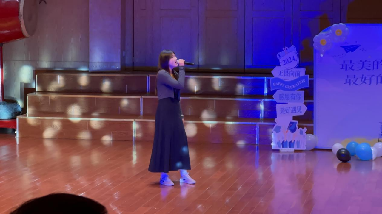 魏绮婷带来独唱《离歌》,以其深情的演绎让人们感受到了离别的忧伤与不舍,纪念着想留不能留的学生时代。歌声感叹着对未来的不确定和对过去的怀念,让同学们更加珍惜眼前的每一刻。