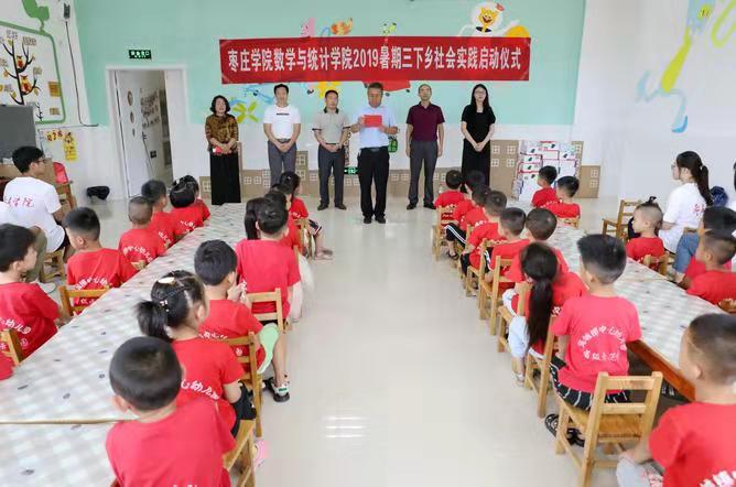 7月10日下午,2019大学生暑期“三下乡”社会实践启动仪式在山亭区凫城镇中心幼儿园启动举行。会议由凫城镇焦山头村第一书记褚衍彪主持。仪式上,凫城镇中心幼儿园园长致欢迎词,beat365英国官方网站党总支副书记王高升传达了学校团委关于暑期三下乡的文件精神,志愿者代表孙杰作了发言,最后数学学院为凫城镇中心幼儿园的孩子们捐赠了学习文体用品。