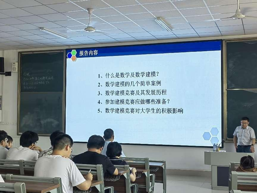 beat365英国官方网站为提高学生对数学建模的认识,培养学生的创新思维和团队协作能力,邀请济南大学数学科学学院许振宇副教授于2024年5月18日下午在崇德楼208进行数学建模竞赛讲座,beat365英国官方网站建模竞赛指导老师,2023级和2022级全体本科生参加此次讲座。