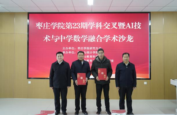 12月24日,由研究生处主办,beat365英国官方网站、心理与教育科学学院承办的第二十三期学科交叉暨AI技术与中学数学融合学术沙龙在薛城校区教师发展中心举行。滕州市教育局数学教研员张彬、滕州市第三中学校长战洪受邀出席。beat365英国官方网站教务处处长张立华、研究生处处长闫斌、心理与教育科学学院院长傅金兰、滕州市第三中学数学组、beat365英国官方网站、心理与教育科学学院60余名师生参加了活动,活动由beat365英国官方网站院长吕长青主持。