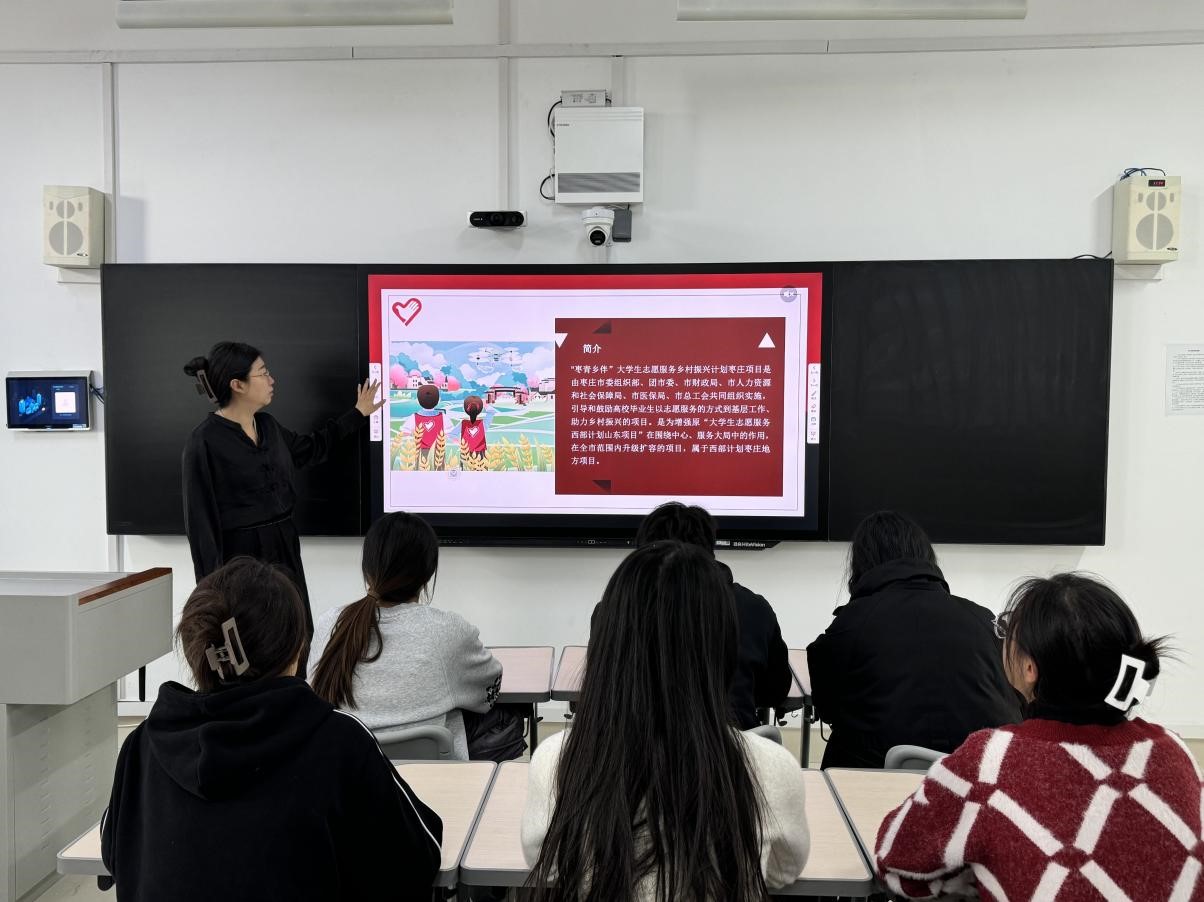 本次会议的主要向毕业生介绍枣庄市委对枣庄计划的大力支持、枣庄计划的主要服务内容、对beat365英国官方网站学生选岗的优先政策、工资福利待遇等、注意事项等,帮助同学们更好的了解枣庄项目。