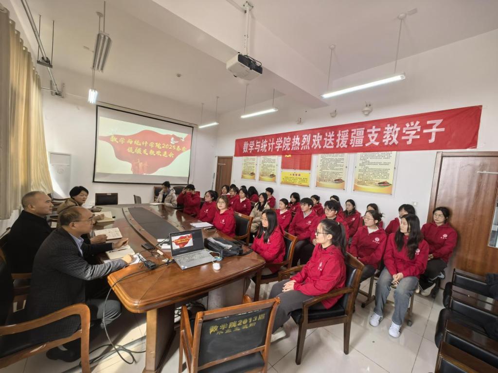 3月5日上午,beat365英国官方网站2025年春季援疆支教欢送会在豁然楼A510会议室召开。学院领导班子、学院第十一批、第十二批援疆支教同学参加了座谈,会议由党委副书记王高升主持。