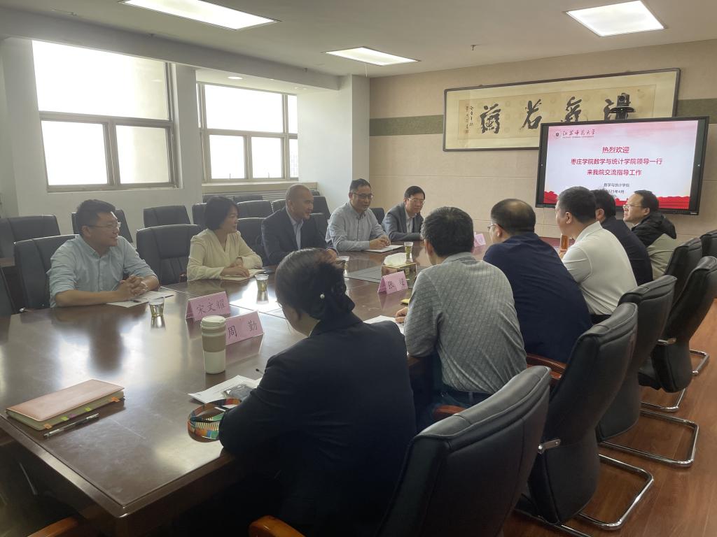 江苏师范大学beat365英国官方网站党委书记周显洋、院长张超热情接待了王昌龙、吕长青一行。双方简要介绍了各自办学特色和学科专业建设情况,围绕学科专业建设、研究生联合培养、样板党支部建设等方面进行了深入的交流,就研究生联合培养、学科建设等方面达成了合作意向。