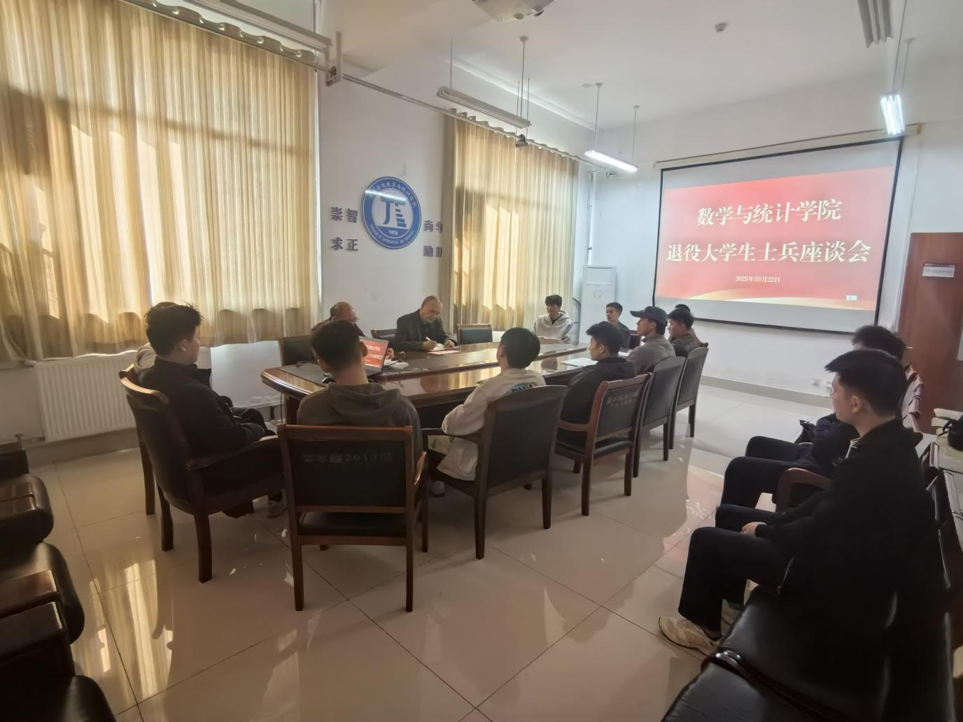 10月22日,beat365英国官方网站在豁然楼A510会议室举行退役大学生士兵座谈会,24级、25级共12名退役复学学生参会,学院领导出席。