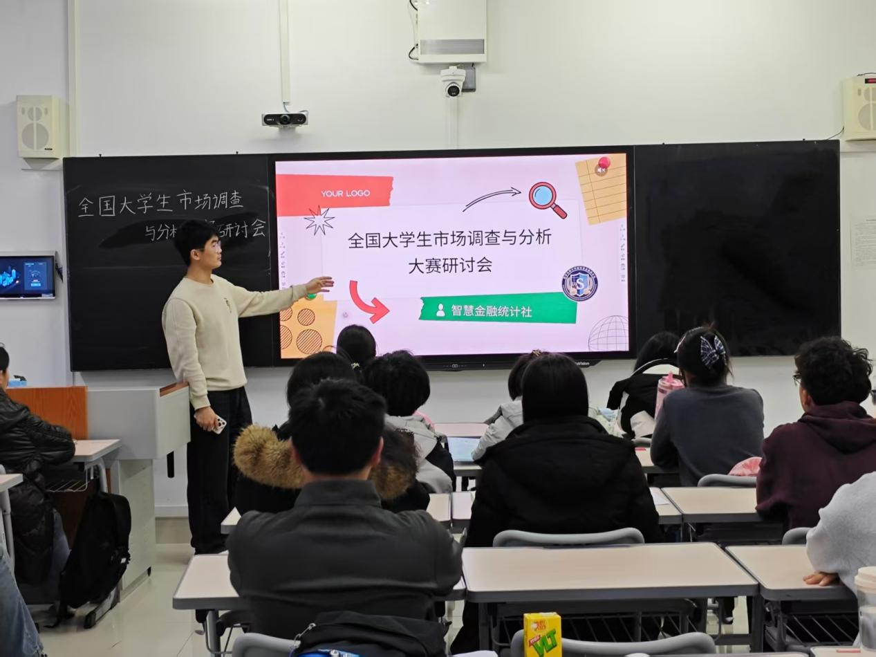 为帮助备赛学生理解全国大学生市场调查与分析大赛的核心逻辑,提升调研方案设计与数据分析的专业实操能力,10月15日,beat365英国官方网站智慧金融统计社在增信楼515举办全国大学生市场调查与分析大赛专题研讨会。