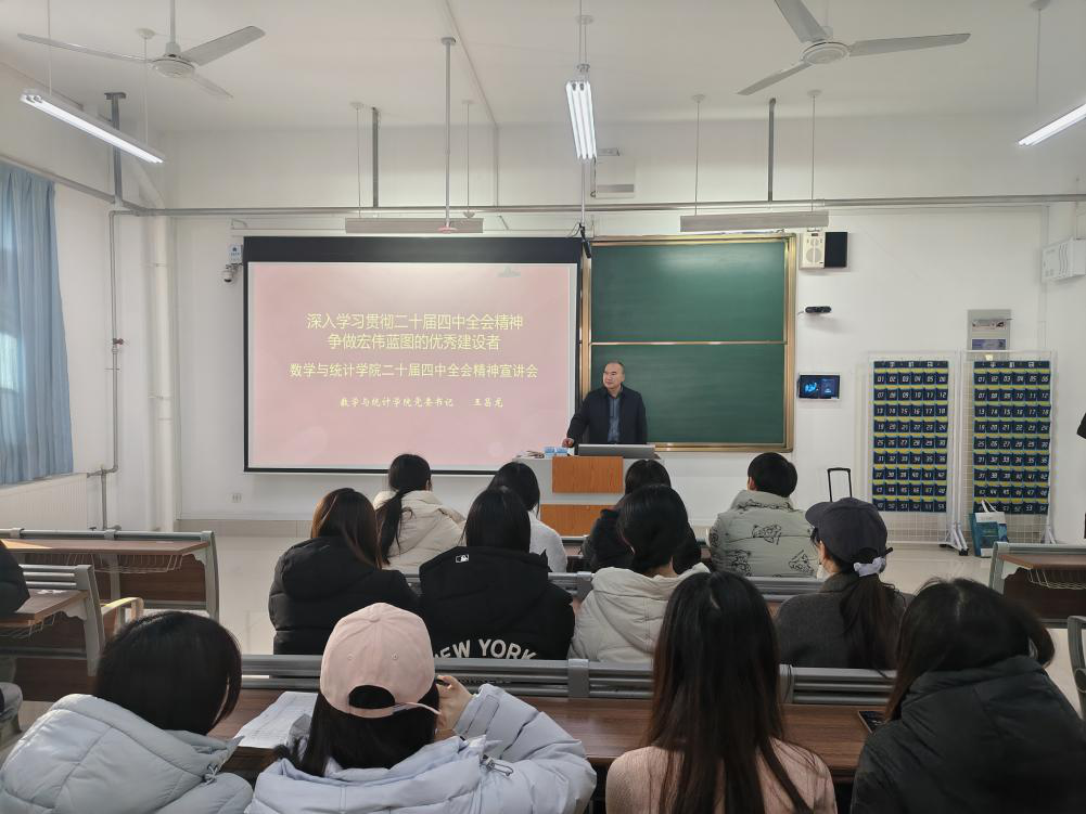 为深入学习宣传贯彻党的二十届四中全会精神,深刻认识全会的里程碑意义,把握新征程的历史方位,1217日下午,beat365英国官方网站党委书记王昌龙以《深入学习贯彻党的二十届四中全会精神,争做宏伟蓝图的优秀建设者》为题,宣讲党的二十届四中全会精神,学院学生党员、入党积极分子、主要学生干部参加了宣讲会。
