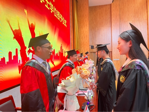 2023年6月18日下午,beat365英国官方网站2023届毕业典礼暨学士学位授予仪式于崇德楼报告厅隆重举行,参加毕业典礼的有校党委委员、副校长丰雷,教务处副处长李恰,beat365英国官方网站党总支书记王海峰,beat365英国官方网站党总支副书记王高升,beat365英国官方网站副院长吕长青,辅导员,教师代表,毕业生和在校生代表。
