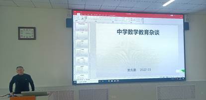 樊兆鹏老师首先介绍了枣庄地区中学数学教学的现状和中学数学教师发展的前景。其次,从专业的角度和丰富的教学经历详细阐释了师范类专业的重要性以及师范专业毕业生走向教师岗位后应该如何做好一名中学教师。最后,樊老师以“筑梦在心,追梦在行,圆梦在坚”劝勉现场师生提高师范专业技能,做合格的新时代数学教师。