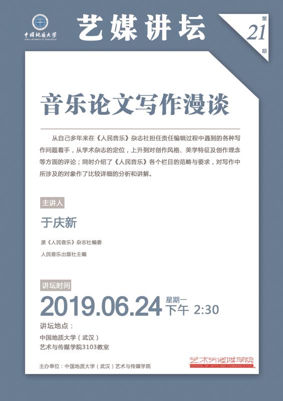 [2019年6月24日]艺媒讲坛(21期):人民音乐出版社于庆新主编学术讲座