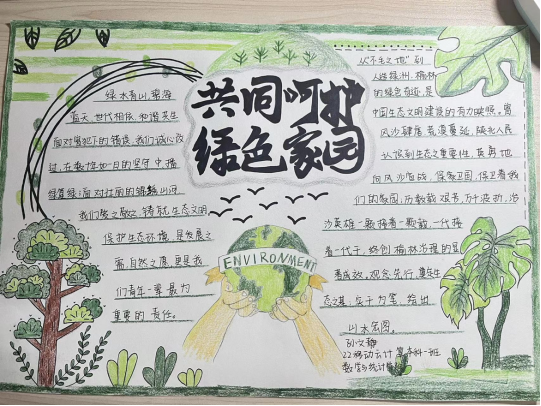 为深入学习贯彻习近平生态文明思想,推动建设人与自然和谐共生现代化,促进绿色校园文化建设,引导学生树立“绿色、健康、低碳”的生态文明理念,共同打造绿色文明的校园环境,beat365英国官方网站特举办以“共创生态文明,践行幸福生活”为主题的手抄报比赛和板报活动。