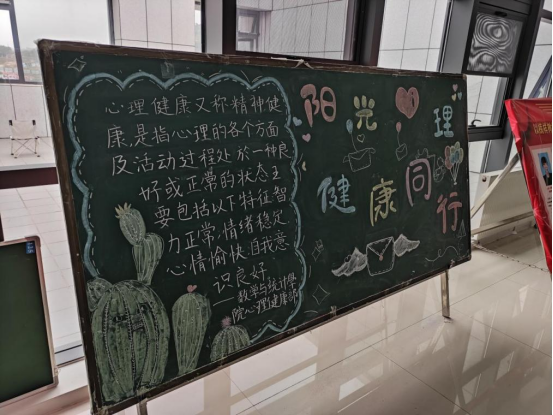 在以“阳光心理,健康同行”为主题的黑板报活动中,生动有趣的画面不仅仅使同学们心情愉悦,同时板报内容也解决了同学们心中的疑惑和不解,帮助同学们调控自己的情绪,积极面对生活。