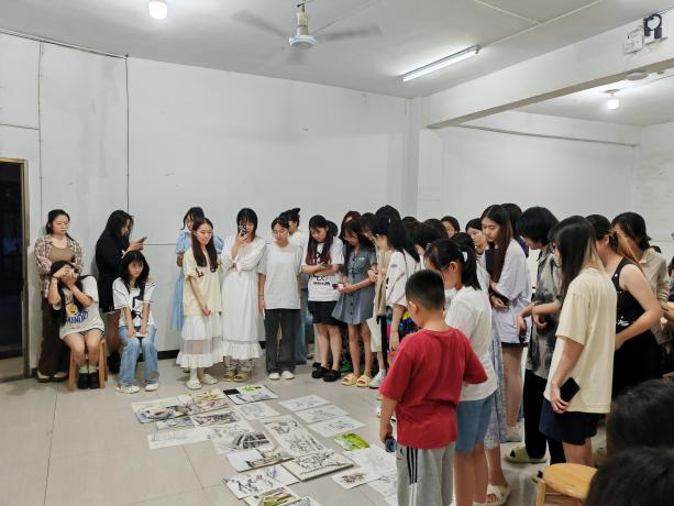 第九天,大家自由写生,在晚上七点钟时集中在大厅进行作业点评。由两位老师悉心指导,指出作业的待改进之处并评出优秀作业作为范例。点评的最后老师指出了之后绘画需要注意的地方,对写生过程中同学们的能力提升有很大帮助。