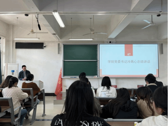 第七项,学院党委书记冷再心总结讲话,冷书记阐释“弘艺班”命名深意,指出其兼具“弘扬艺术、锤炼技艺”内涵与“弘毅”精神传承,旨在鞭策新时代青年成长。并围绕三大方面提出要求:一是坚定理想信念,深入学习党的创新理论,将个人理想融入国家发展大局,做有理想的新时代青年;二是珍惜培训机会,借助理论学习、实践锻炼等丰富课程提升综合素质与专业能力,做有本领的新时代青年;三是勇于责任担当,发挥学生骨干先锋模范作用,在服务同学与学院中锤炼品格、直面挑战,以“弘毅”精神践行时代使命。最后,冷书记鼓励学员以此次培训为起点,成长为优秀青年骨干,为学院发展贡献力量。
