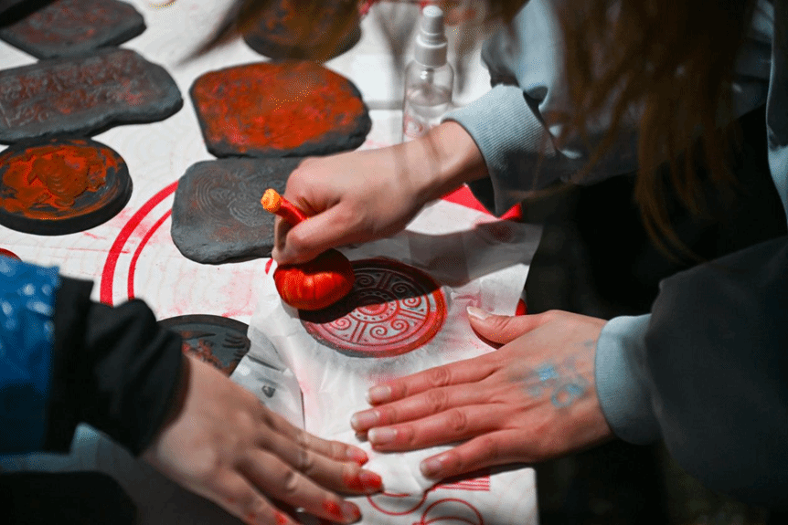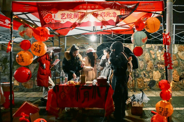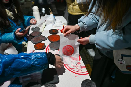 漆扇制作与拓印摊位聚焦传统文化传播,工作人员详细讲解工艺要点与操作流程,引导师生亲身参与创作,在实践中感受传统工艺的独特魅力,亲手完成的作品成为兼具纪念意义与文化价值的跨年信物。
