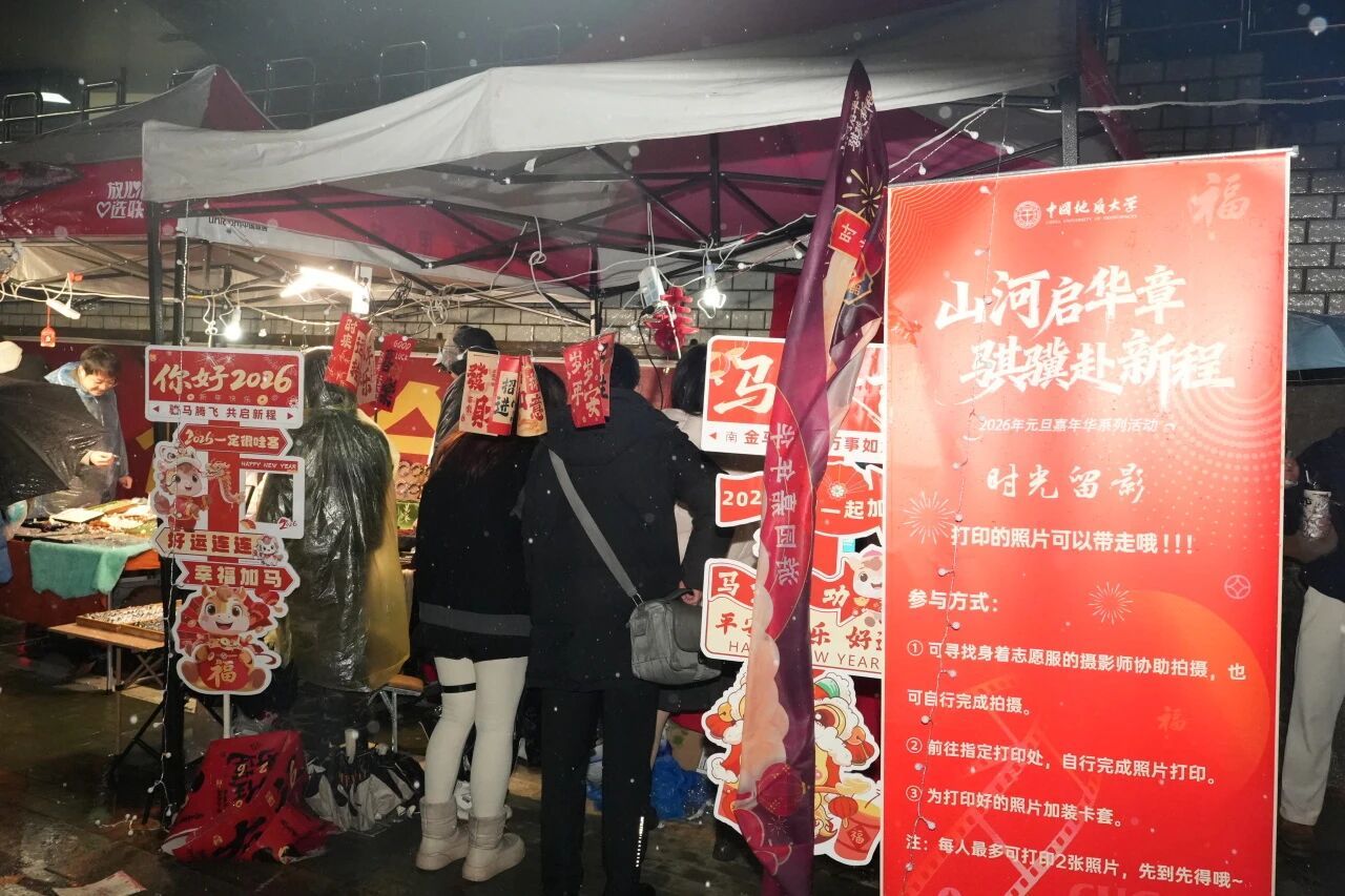 岁月流转启新章,骏马踏春绘宏图。2025年12月31日晚,冬雨淅沥,却未浇灭地大学子相聚的热情。他们执伞而来,在元旦嘉年华的璀璨灯火与湿润光影中,共同憧憬即将到来的2026马年新岁。
