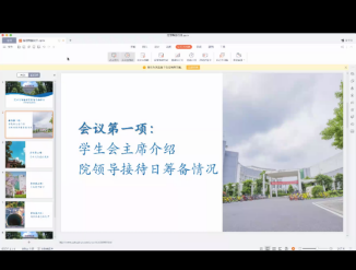 会议第一项,学院学生会副主席雷绍婷介绍本次院领导接待日的筹备情况。她从学生会各部门前期的宣传准备工作,各班学生代表与学生会参与筹备工作和后期会议记录整理与提案落实反馈三个方面介绍了本次院领导接待日的筹备情况。