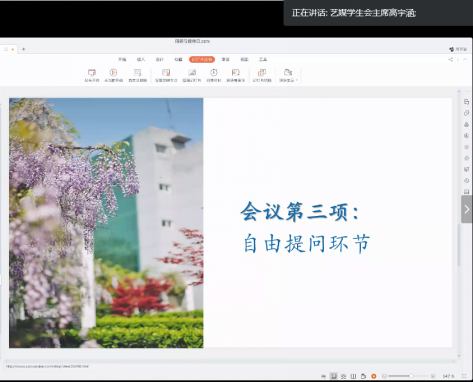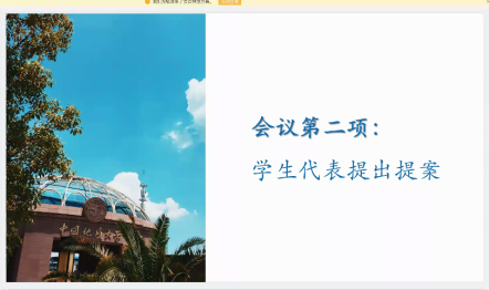 会议第二项,各班学生代表提出提案,学院领导进行回复。回复提案采取一问一答的方式,相应的老师针对学生的问题逐一进行解答。来自各年级各专业的学生依次就线上教学无课本学习节奏跟不上、网络信号不好影响课程学习、缺少上课所需要的材料、在家无监督作息不规律、毕业设计缺少相应资料进展困难、毕业音乐演唱会的准备进展缓慢等问题进行提问,院领导和各位老师们在聆听了问题后一一给出解答和建议。