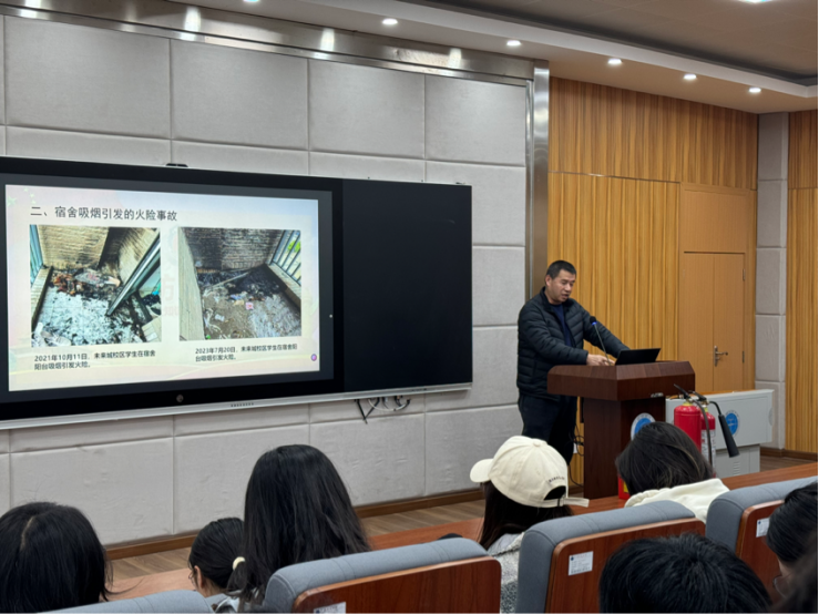 为贯彻落实学校有关新学期学生安全教育管理工作的文件要求,围绕“开学第一课”开展系列引导教育活动,3月7日下午,KY开元集团官网邀请了学校安全保卫部消防科科长刘从贵老师在1104报告厅面向学院全体本研学生骨干做关于消防安全的主题讲座。学工组全体专兼职辅导员参加本次活动,讲座由学生会秘书部潘爱一主持。