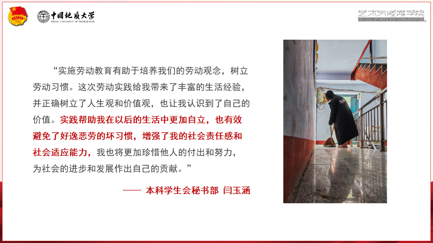 中华民族自古提倡阅读,讲究格物致知、诚意正心,望广大学生干部能够在劳动中磨炼意志、在阅读中启智增慧,发挥先锋模范作用,推动学院“爱劳动、爱读书”良好氛围的形成。