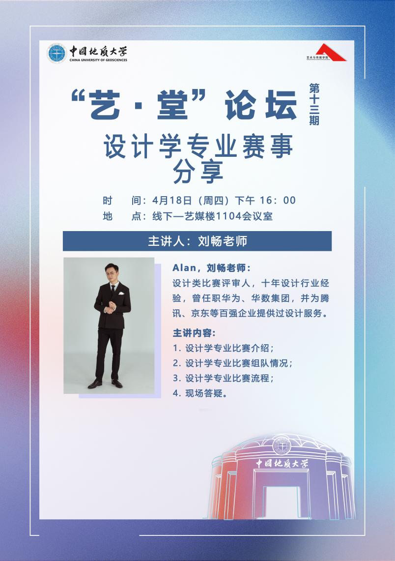 2024年4月18日下午16:00,“艺·堂”论坛第十三期设计学专业赛事分享会于KY官网1104顺利举行。学院邀请了湖北三维空间教育咨询有限公司的刘畅老师为同学们进行有关设计学专业赛事的经验分享。本次讲座由兼职辅导员于梦涵主持。