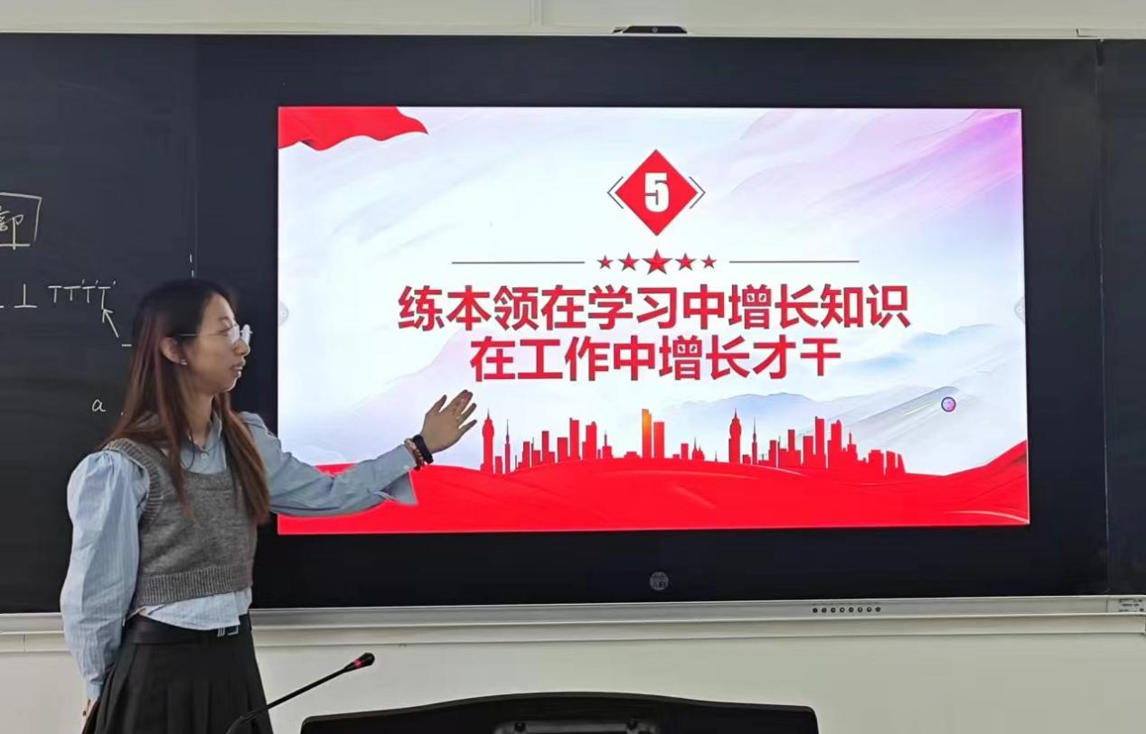 陈嘉欣同学带领在座团员学习了习总书记对广大青年的重要讲话,倡导大家在生活中践行五四精神,争做新时代青年。她围绕总书记的五四寄语,强调青年理想、青年本领、青年担当的重要性,同时呼吁同学们要志存高远,脚踏实地,把自己的理想同祖国的前途紧密联系在一起,扎根人民,奉献国家,努力成为新时代的有为青年。