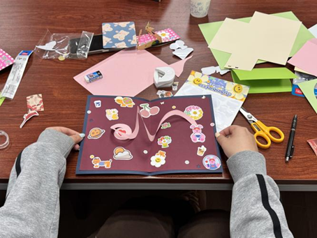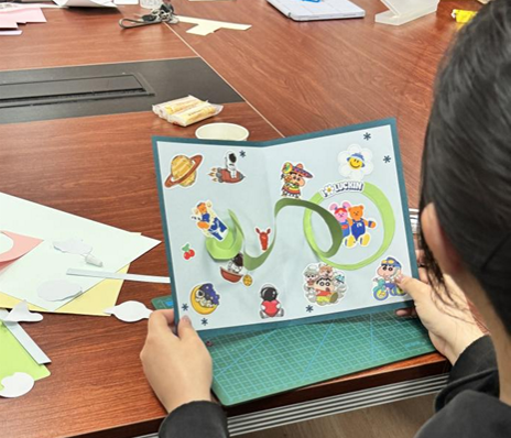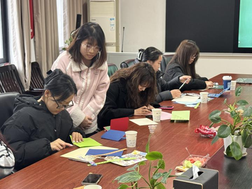本次活动创新性地将心理育人和学科特色相结合,通过艺术疗愈过程中联动视觉、听觉、触觉等多重感官体验,帮助参与者实现更全面、更深层次的舒缓与释放。活动过程中,带领人刘燕晓、祖予希首先向大家介绍了立体贺卡制作的注意事项,随后各小组助教闫宇轮、曹慧娴、李怡雯详细讲解了制作流程,耐心解答同学们的疑问,并鼓励大家充分发挥想象力,创作独一无二的艺术作品。