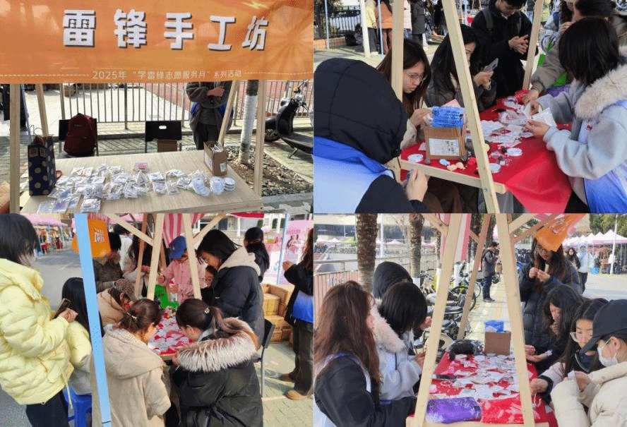 3月6日上午,学院志愿者积极参与第二届“雷锋月公益集市嘉年华”活动,设立主题手工摊位开展现场志愿服务。活动前期,志愿者们认真筹备所需材料,提前完成摊位布置。活动现场,志愿者们热情邀请师生参与体验,耐心演示手工制作技法,协助参与者完成作品,营造了互助友爱、温暖和谐的良好氛围。通过互动体验的方式,志愿者们将雷锋精神以润物细无声的方式传播到每一位参与者心中,进一步增强了活动的感染力和参与度。