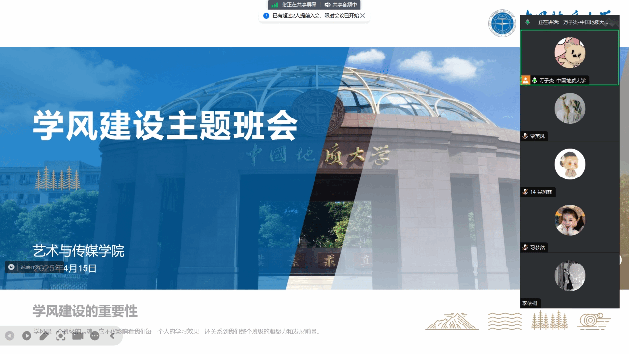 此次学风建设主题班会是学院对教育质量提升、人才培养的高度重视与积极行动的体现。未来,学院将协同各班委进一步强化落实本次班会收集的意见与建议,努力构建“严在地大、学在艺媒”的良好学风氛围,构建“学术有规范、成长有支撑”的全方位育人格局,助力研究生成为德才兼备的高素质人才。
